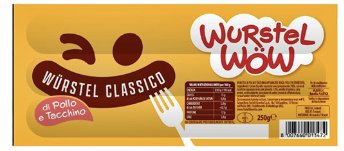| Ingredienti | Carne di pollo separata meccanicamente 78%, carne di tacchino separata meccanicamente 12%, amido di patata, sale, aromi, antiossidante: ascorbato di sodio; aromi di affumicatura; conservante: nitrito di sodio. |